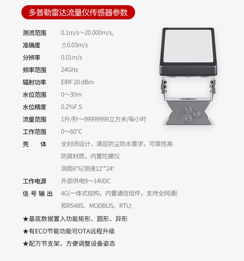 多普勒雷达流量计、宽量程、非接触测量、污雨水管网、河道流量、水渠流量