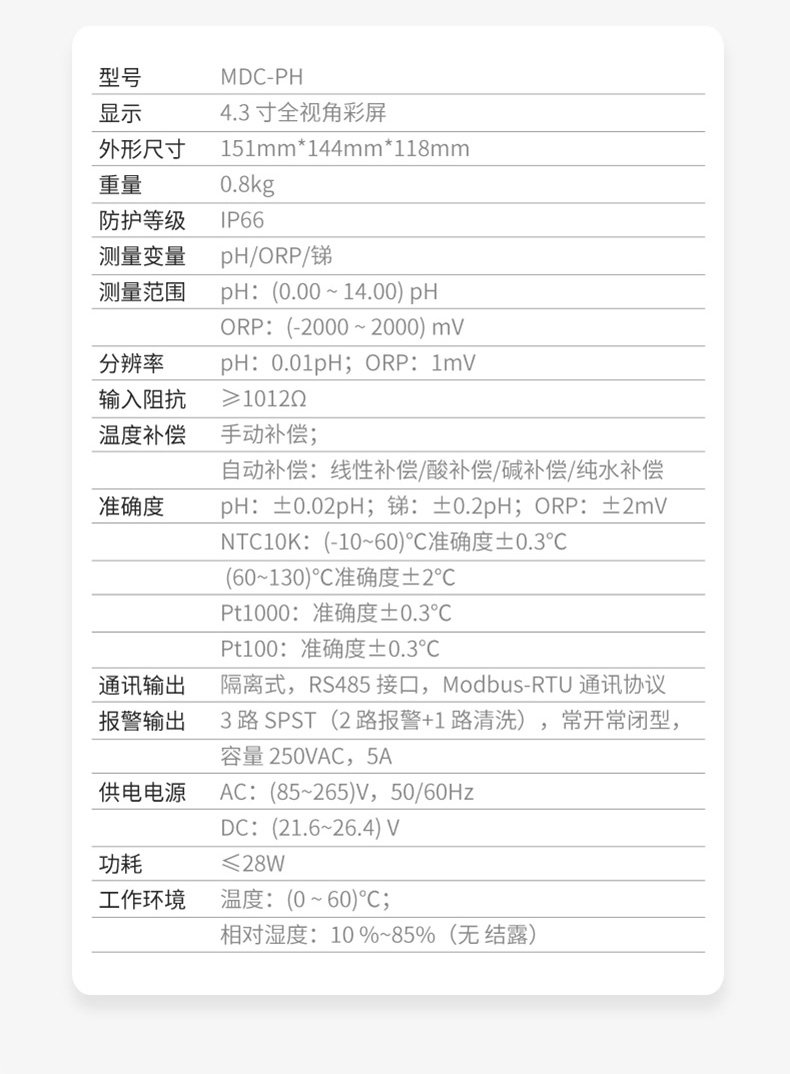MDC-pH双控制器高精度工业在线pH/orp控制器 通用控制器、双通道、NB-IoT 无线通讯