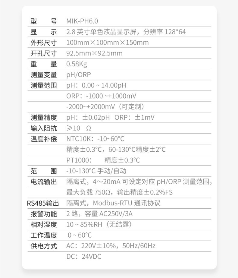 MIK-PH8.0控制器是一款智能在线水质分析仪表,用于在线监测pH/ORP值的控制器