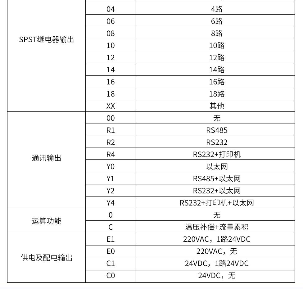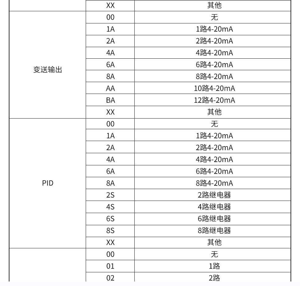 模拟输出:4~20MA(负载电阻≤380Ω)、0~20MA